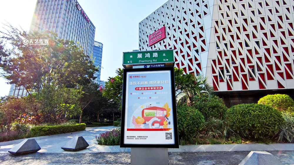 此次華夏銀行廈門分行再度與天藝傳媒合作,投放島內(nèi)多個(gè)主干道位置、商業(yè)區(qū)、寫字樓周邊的城市路名牌,且多為長(zhǎng)期投放合作,長(zhǎng)時(shí)間多個(gè)黃金位置曝光,為全市人民展示華夏銀行廈門分行精彩紛呈的多檔優(yōu)惠活動(dòng)及針對(duì)小微企業(yè)的保障優(yōu)勢(shì)。